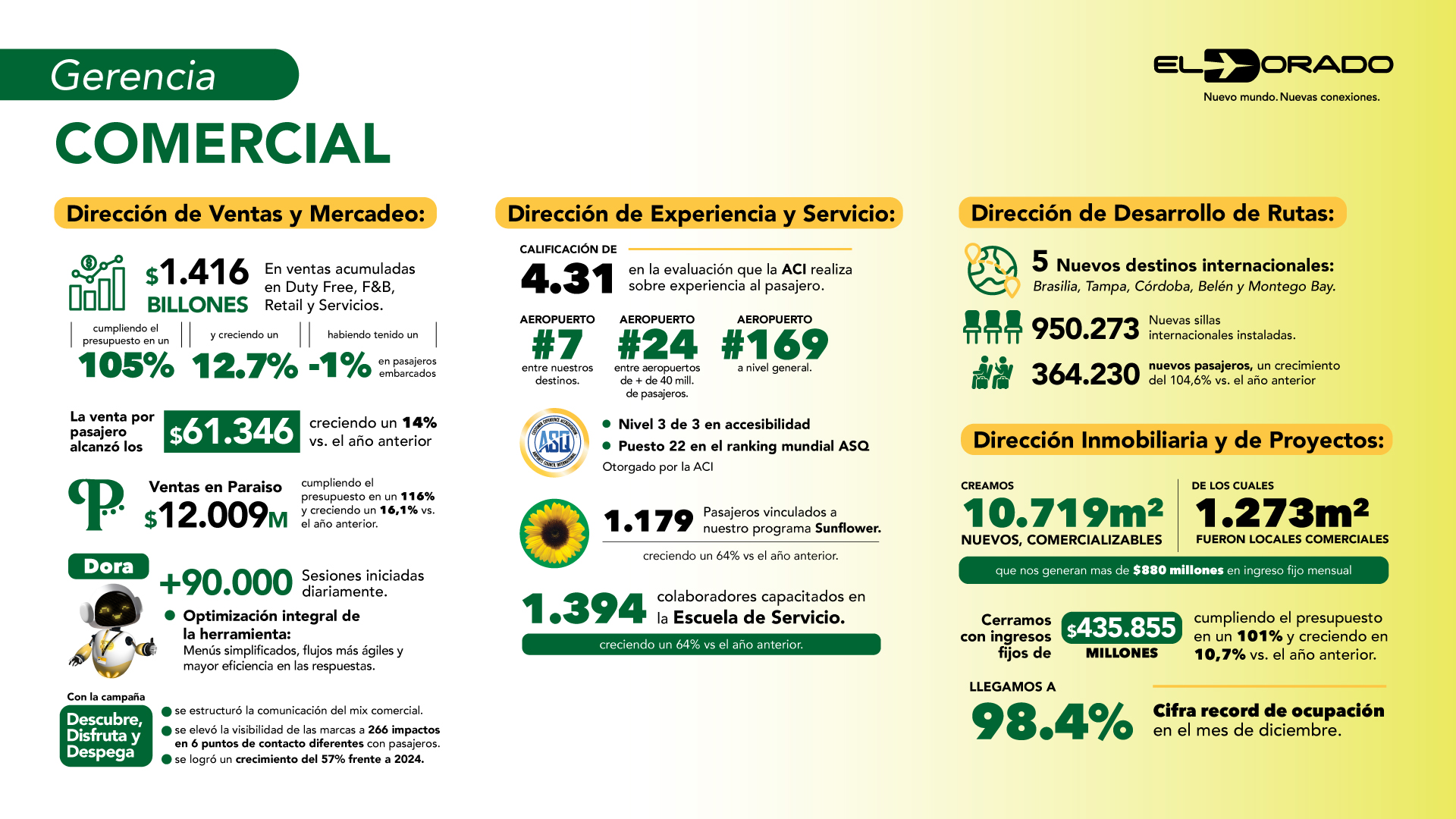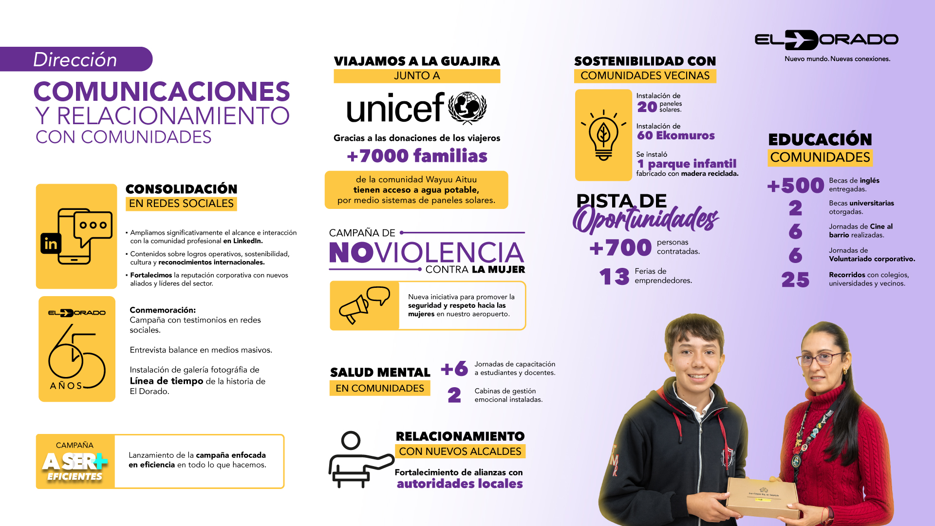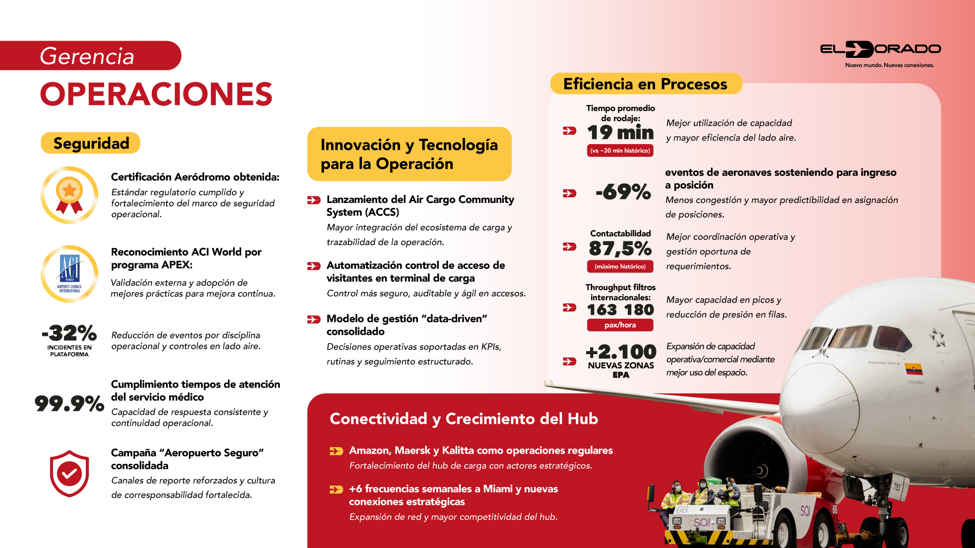 2025: Eficiencia, seguridad y calidad de servicio. En el 2026, seguiremos trabajando con total dedicación y compromiso para garantizar la excelencia operativa, la seguridad y la eficiencia en cada uno de nuestros procesos. Nuestra prioridad seguirá siendo el pasajero y la experiencia. Bajo una base de solidez operativa, mantendremos nuestro compromiso de generar conexiones relevantes que aporten positivamente a la sociedad, las comunidades vecinas y la preservación del medio ambiente.